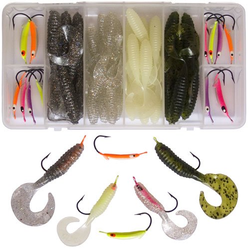 This compact, complete kit is perfect for the avid Bass Angler, featuring a unique new approach to fishing with jigs and plastics. Kit contains patented Bass GrubMaster Jig heads and popular Kalin Grub tails in the hottest colors and sizes. Instructions and diagrams on rigging are included. Super kit for both Largemouth and Smallmouth Bass. Information and contents are combined in a compact Plano box. FEATURES: The 12 Slo-Poke GrubMaster Jigs in 1/16, 1/8 & 1/4 oz sizes. Excellent horizontal slow fall, swimming action , weight centered design. The GrubMaster Jig sinks horizontally, in a natural orientation, not head first like conventional lead head jigs. The GrubMaster is an "insert jig" it fits snugly inside the 30 Kalin Hologram 3" & 5" grubs. The GrubMaster has a unique, weight centered body. Unlike power heads and ball jigs that plunge head first vertically, the weight centered GrubMaster falls slowly and horizontally, keeping the bait in the strike zone longer. This phenomenon makes it easier for suspended fish to inhale the bait. Additionally, the horizontal orientation gives the bait a unique gliding, swimming action, like real baitfish. The GrubMaster is designed to enhance the color of plastics with Create A Bait. The Create A Bait concept is an exciting new look in jig and grub color combinations. The placement of a uniquely colored GrubMaster, inside a transparent plastic body, allows the jighead to shine through and provide background color. This phenomenon, Create A Bait, can either subtly enhance or completely transform the color of plastics. Color combinations are limited only to the imagination. Now the innovative angler can match the hatch by creating a limitless number of custom color patterns by simply mixing and matching jigheads and plastic tails. All jigs feature VMC Performance 4/0 hooks.